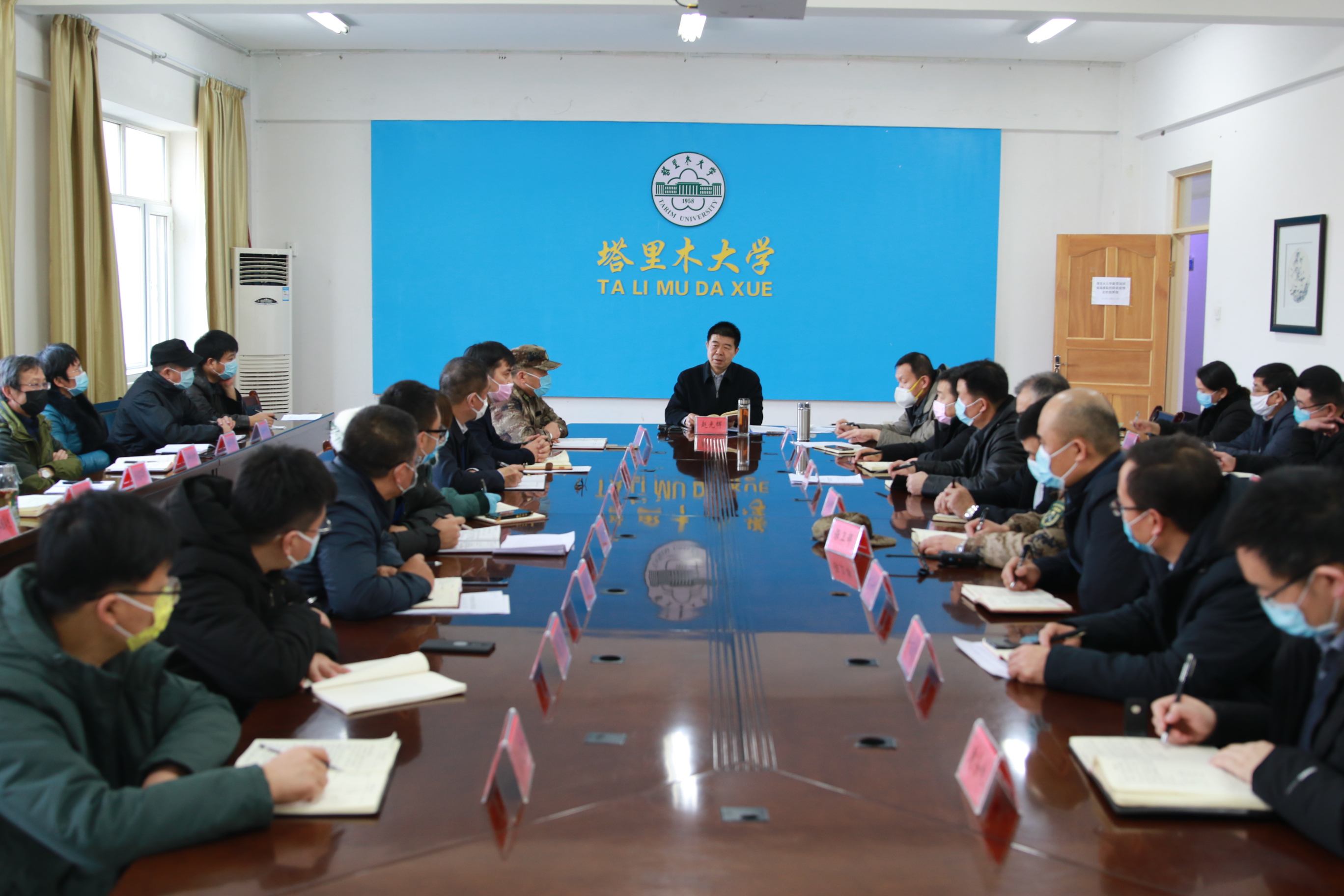 1月28日下午,塔里木大学召开新冠肺炎疫情防控工作领导小组第四次会议,进一步传达学习贯彻习近平总书记重要讲话、重要指示精神和中央政治局常委会会议精神,研究部署学校新冠肺炎疫情防控工作。党委书记赵光辉主持会议并讲话。党委常委、副校长于军、石长青,以及学校疫情防控工作领导小组成员参加。会议在行政楼317室召开。