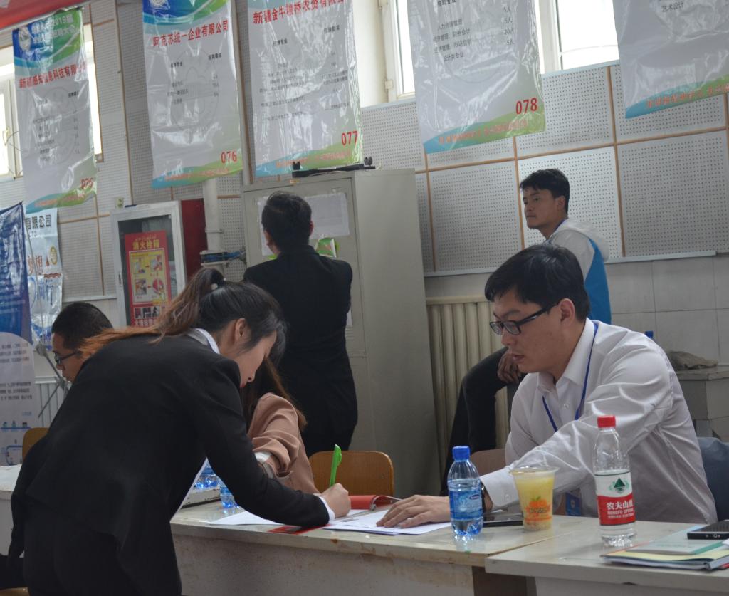 此次招聘会上,用人单位提供了很多岗位和职业供毕业生选择。用人单位表示,需要毕业生能吃苦、有责任心、专业知识扎实,有一定的社会经验。阿克苏银河建设工程项目管理有限责任公司招聘负责人秦帅与前来应聘的毕业生深入交流沟通,详细介绍了公司发展状况、员工待遇、未来发展等问题。