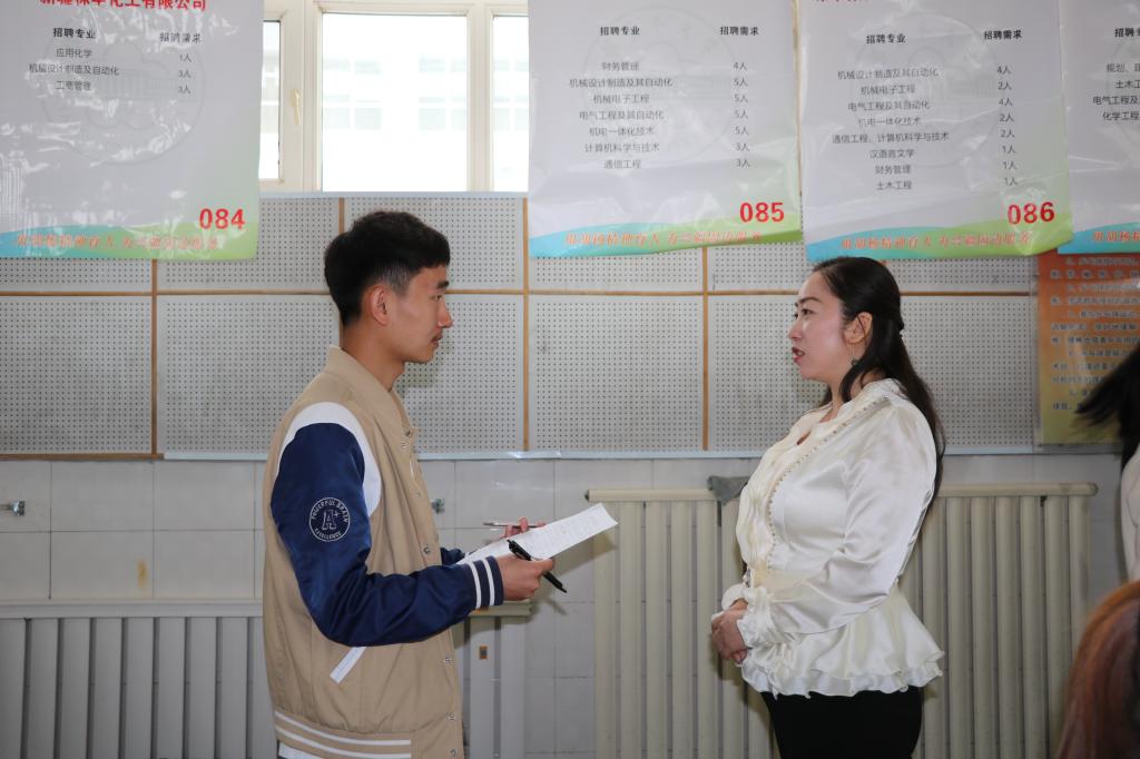 在与和融热力有限公司招聘负责人交谈时,记者了解到往届毕业生在该公司扎实肯干、表现突出。对此,王旭峰告诉记者,学院在人才培养上要求基础扎实,在人才培养过程中注重能力培养,学生综合素质高,动手能力强,关键是敢吃苦,肯吃苦。今后学院还将凝心聚力、砥砺前行,把不断提高人才培养质量和科技创新能力作为学院的立足点,用胡杨精神育人,为新疆尤其是南疆培养一批又一批优秀人才。