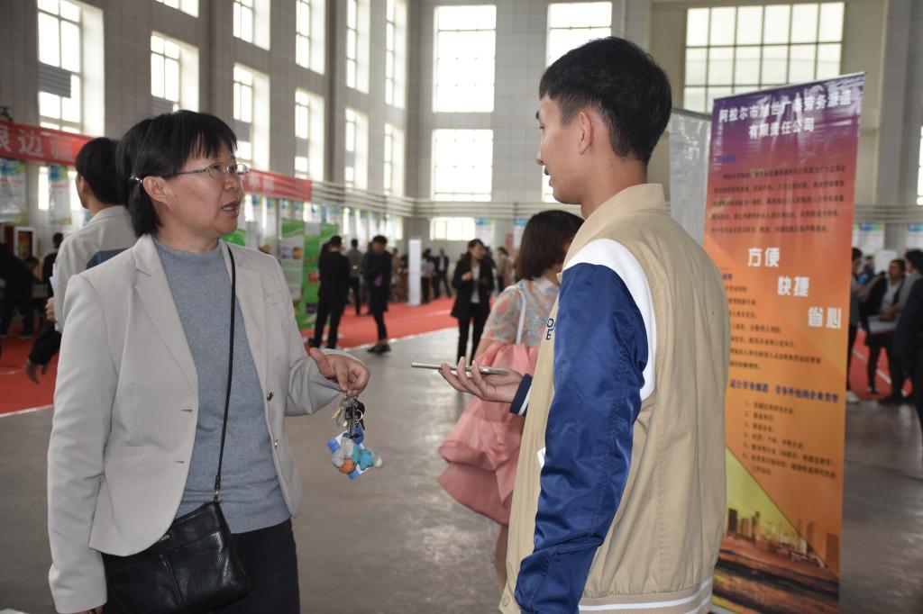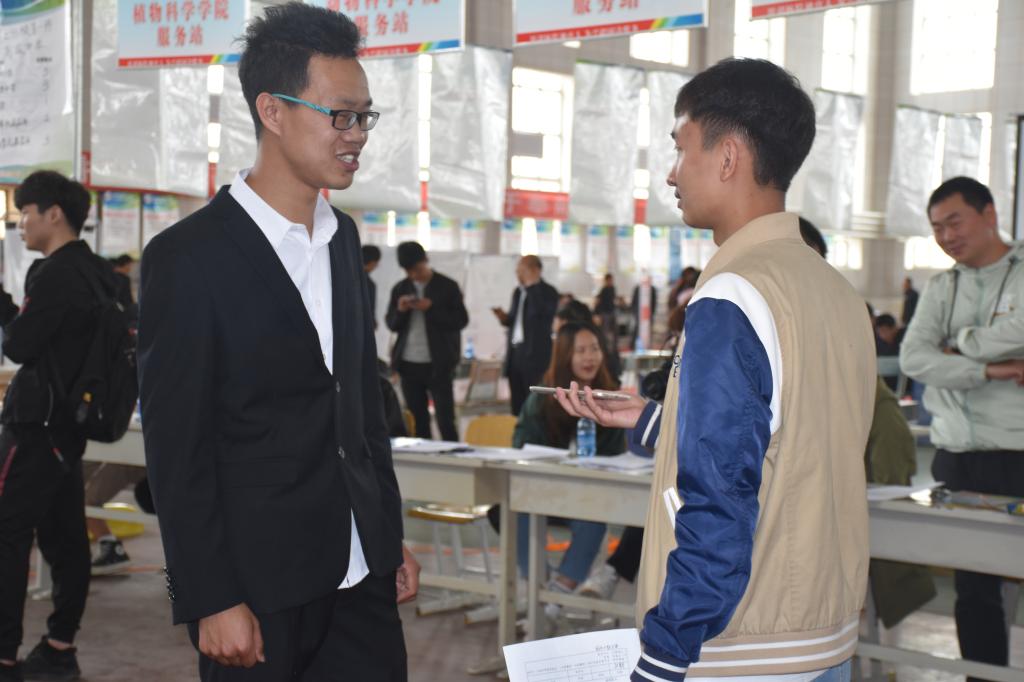 在看到学院的毕业生积极与用人单位交流,机电学院辅导员李勇告诉记者,就业是最大的民生,坚持办好招聘会对提高毕业生就业率和就业质量非常重要。此次招聘会前期,学院与多家企业、公司洽谈,为毕业生严格把好步入社会第一关,共给用人单位发出了120份邀请函。这些单位一方面与学院长期合作关系融洽,通过往届毕业生的反馈综合情况良好;另一方面通过学院实地考察做了许多前期工作,努力为毕业生踏出学校、走向社会提供保障。希望越来越多的毕业生选择留疆工作,尤其是留在南疆工作。南疆如今的发展可谓日新月异,这些变化是学生们大学期间亲眼所见、切实体会得到的。这里发展前景广阔,有很多优秀的企业单位,有大量的岗位需求,非常适合我们的毕业生在这里扎根奋斗,努力实现自身价值。