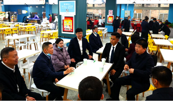 来到学生食堂,邵峰与联系学生坐在一起边喝咖啡,一边亲切交谈,并了解学校食堂建设管理情况。