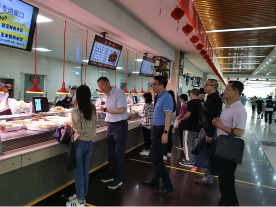期间,于军考察了西安电子科技大学北(新)校区学生公寓、学生食堂、教工餐厅、校区中心厨房等建设情况。