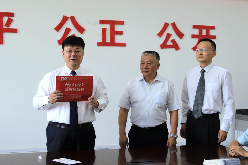 在党委副书记、纪委书记单洪山,党委常委、组织部部长马智群以及纪委副书记、监察处处长马召伟和学工部领导等共同见证下,学校首批《录取通知书》一一封装。