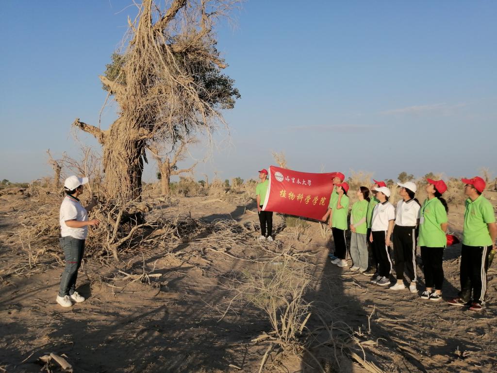 6月18日植物科学学院“农科学子,为农服务”宣讲团赴沙雅县胡杨林保护区,开展主题教育活动。