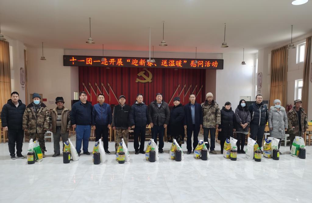 新春佳节将至,为使十一团一连职工群众过上一个祥和温暖的春节,1月30日,十一团一连“访惠聚”工作队和连队“两委”开展“迎新春、送温暖”慰问活动,为老党员、优秀职工代表、困难群众、孤寡老人送上新春祝福。