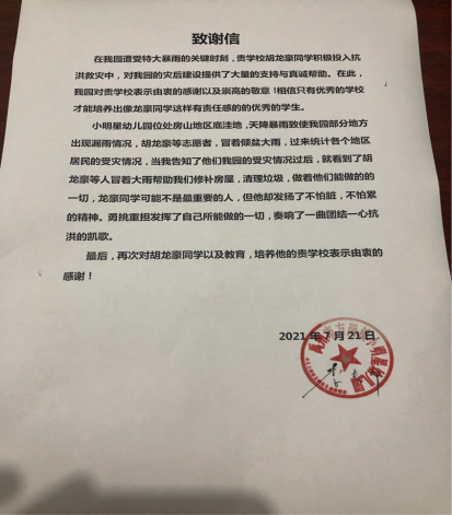 (工管类2019级3班 胡龙豪 河南省禹州市许昌市褚河镇东南湖村三组22号)