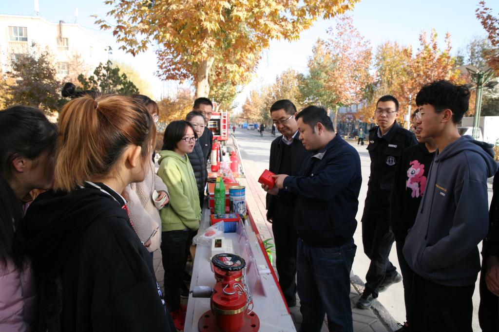 活动现场,工作人员为大家讲解了消防用品的特点、功能和使用。师生们现场积极配合消防工作人员,向来往学生发放了消防安全宣传单。