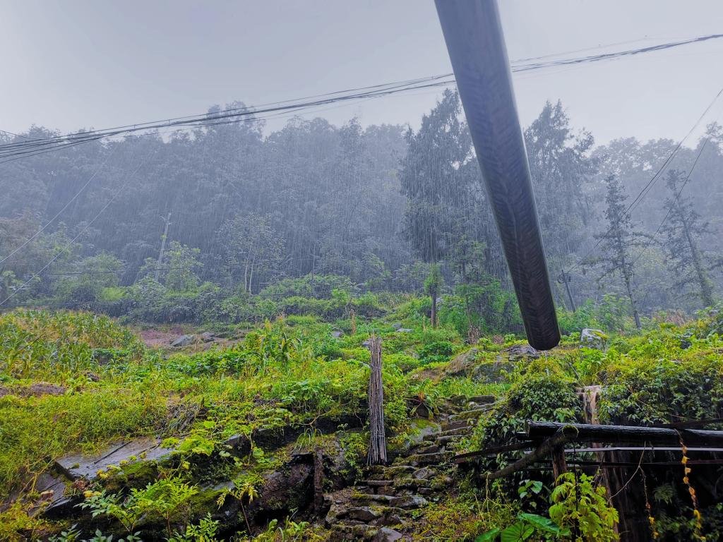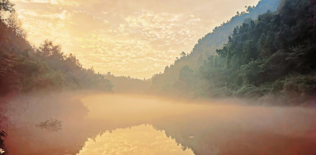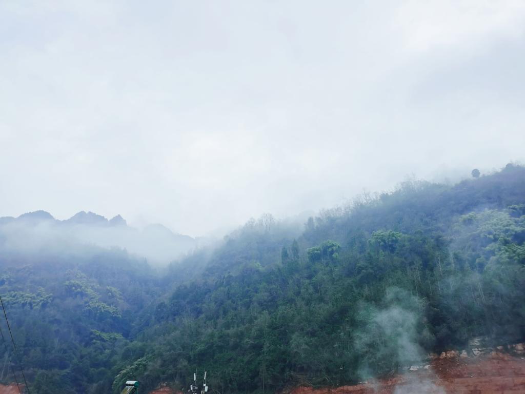 农家炊烟袅袅,和雾融为一体隐匿山间
