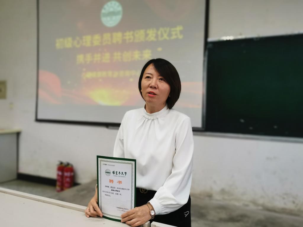 为提高班级心理委员的工作能力,加强学校四级心理危机预防干预工作体系,学生工作处于5与21日-23日晚在逸夫楼阶教13分三场举行了初级心理委员聘任仪式。向2018、2019级各班通过初级心理委员考核的学生颁发了聘书,学工部副部长陈蕾、各学院心理辅导员及267名班级心理委员参加了活动,气氛热烈有序。