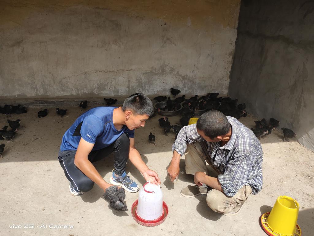 鸡苗发放完毕,科技服务团队走访领取鸡苗的农户家里,根据农户目前的养殖条件就养殖技术进行具体指导,并就后续饲养管理提出建议和措施。