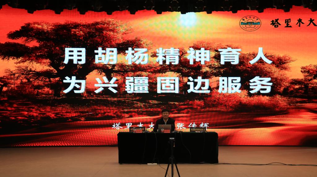 张传辉从习近平总书记的重要批示精神;塔里木大学与“胡杨精神”;用胡杨精神立根铸魂,育兴疆固边时代新人的实践;大力培养爱国爱疆、担当奉献的新时代戍边人这四个方面进行了全面深入的解读。