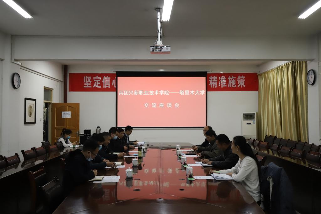 11月3日上午,兵团兴新职业技术学院副院长卢保成、张展一行来校访问并召开座谈会。我校党委常委、副校长石长青主持。兵团兴新职业技术学院有关学院、部门领导及工作人员,我校相关部门、学院主要负责同志参加。座谈会在行政楼317会议室召开。