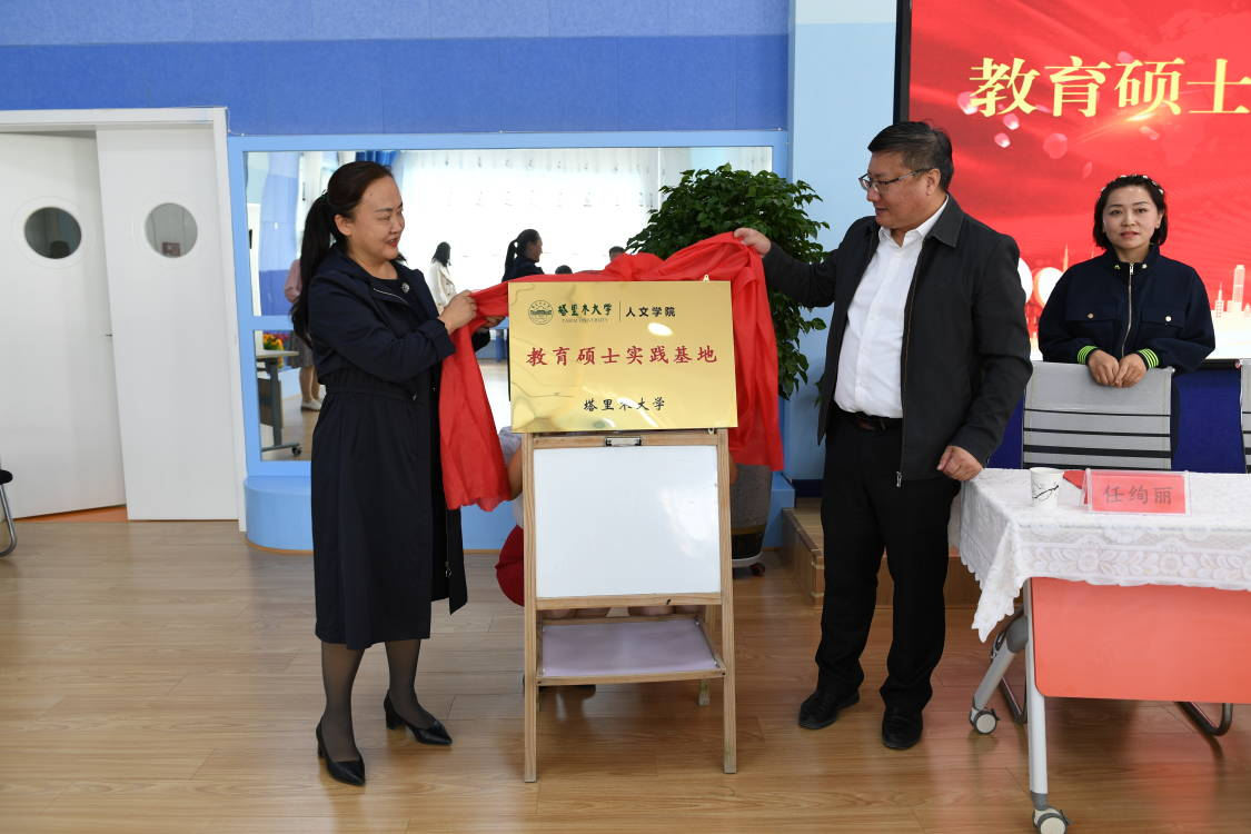 人文学院与塔里木第二幼儿园签订了教育硕士实践基地合作协议。刘春阳与肖涛共同为基地揭牌。