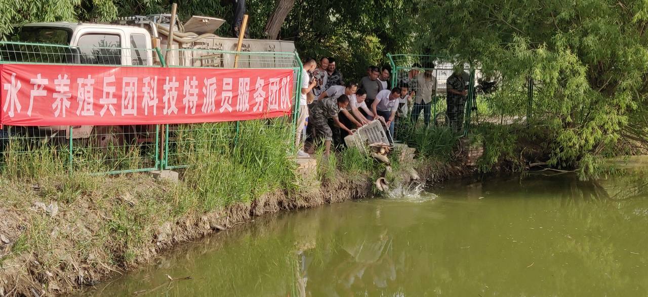 任道全边将鱼苗倒入鱼塘边高兴地说:“我们的服务是长效的,不仅带来致富鱼,还要指导连队职工群众养殖技术。授之以鱼,更要授之以渔,小康路上我们都是同行者,后期我们还有更多的品种要投放过来,在养殖、防疫、捕捞等方面还有很多技术指导,让老百姓从单一的生产模式中解放出来,让多元增收带给他们更多的实惠和收益!”