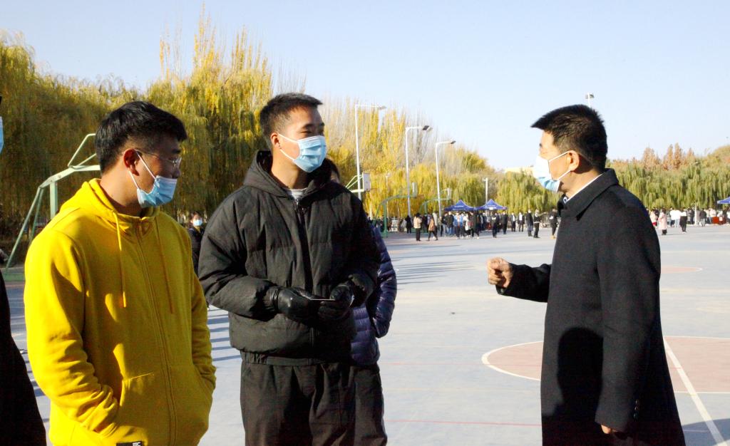 校领导深入各采集点,与师生们、医护人员、工作人员亲切交谈,叮嘱师生们要保持安全距离,戴好口罩,注意保暖,预防感冒。叮嘱医护人员和工作人员要认真负责,一丝不苟,提高检测效率质量。