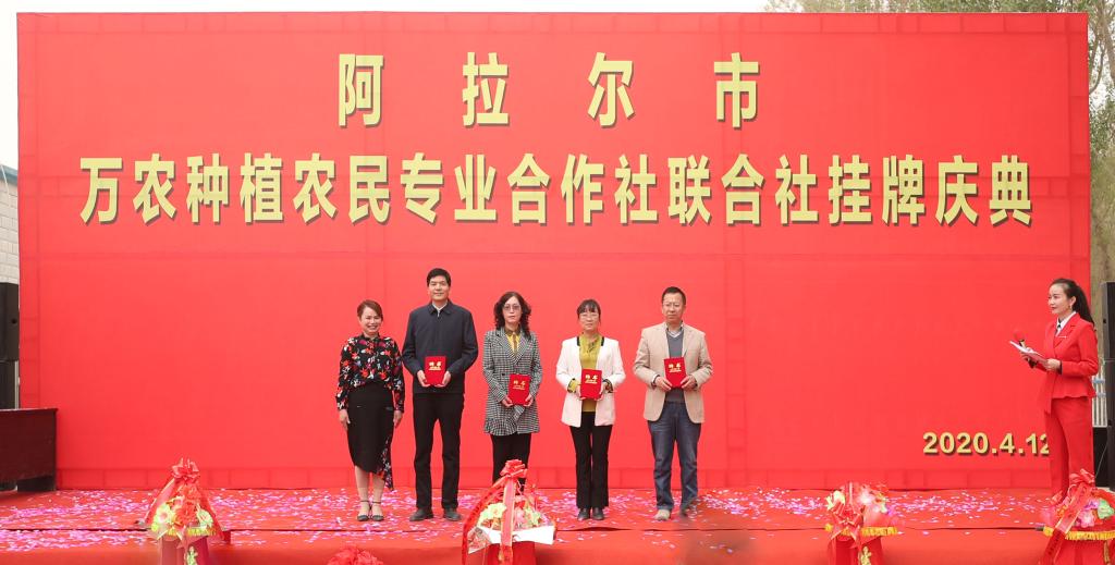 4月12日,阿拉尔市万农种植专业合作社联合社揭牌仪式在十三团“蒲公英乐园”举行。塔里木大学党委书记赵光辉,一师阿拉尔市党委常委、副师长马荣华,塔里木大学党委常委、副校长于军出席。师市、学校相关单位领导、塔大教师代表、合作社代表、职工代表等参加。仪式由联合社理事长尤良英主持。