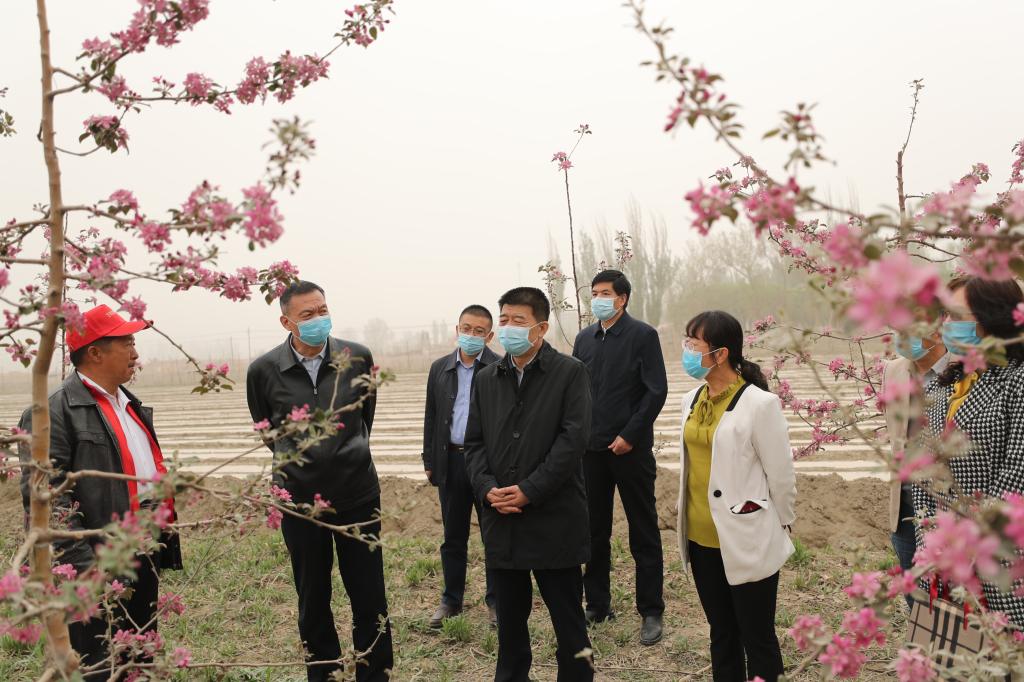 赵光辉一行来到联合社种植基地了解今年果树生长情况。他强调,要充分发挥学校技术优势,从果树栽培、嫁接、施肥、植保等多个环节,加大技术指导和培训力度,确保果树种植提质增效,助力新农村建设,为乡村振兴和产业发展提供智力支持。