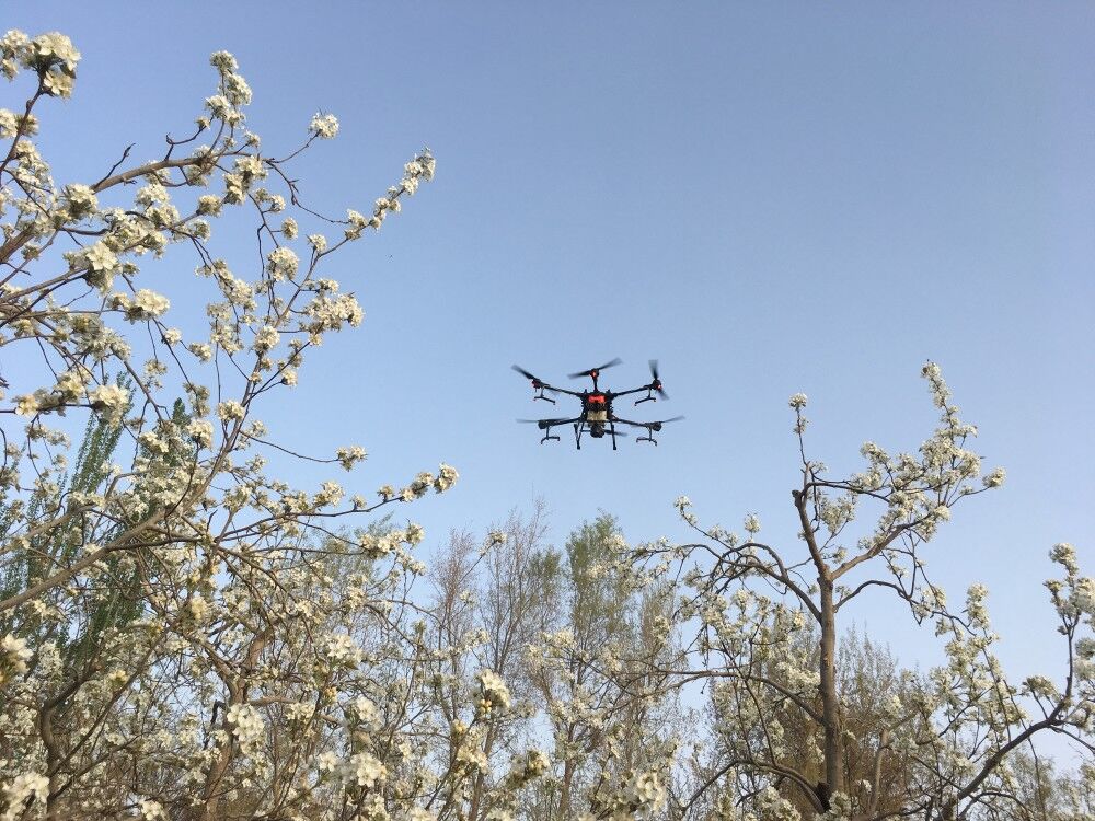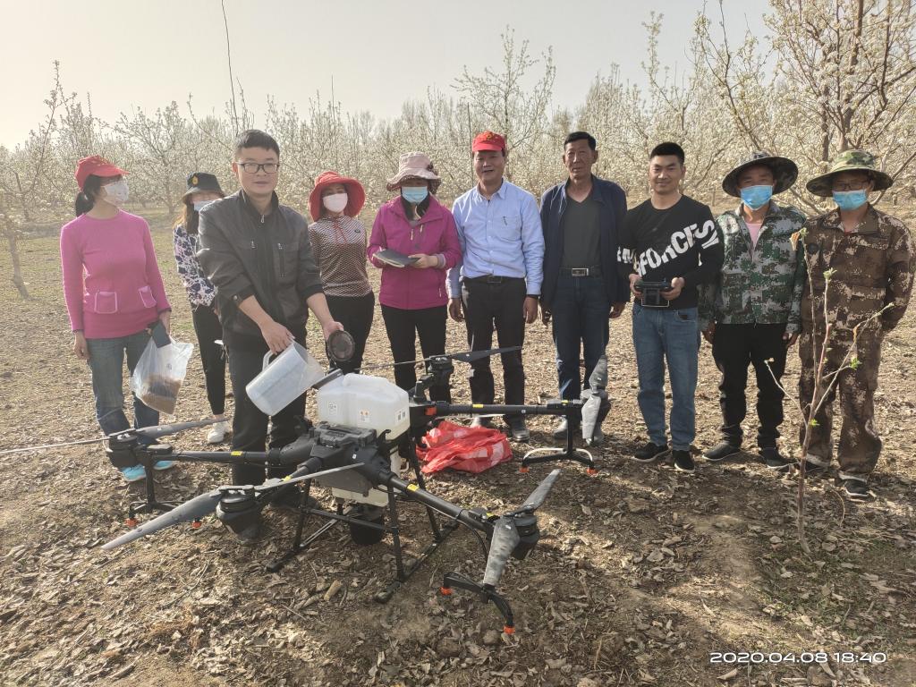 4月8日,我校植物科学学院冯宏祖教授带领团队于农科所、十二团开展无人机辅助梨花授粉,开启梨花授粉机械化提质增效新途径。