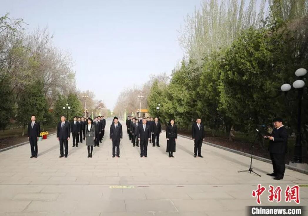 4月4日,新疆塔里木大学举行向王震将军铜像敬献花篮仪式,以此缅怀先烈,全体在校校领导,各部门、各学院主要负责同志,整齐列队,向王震将军铜像敬献花篮、鞠躬致敬。