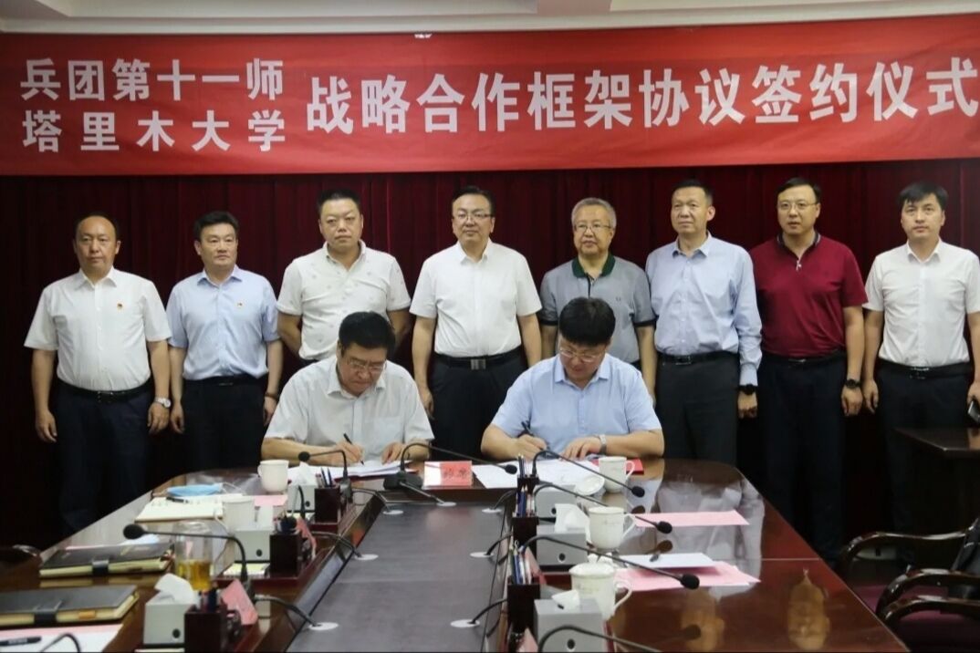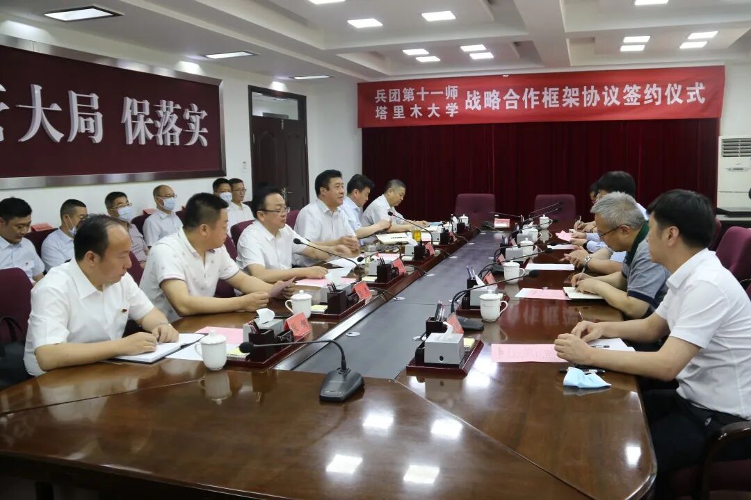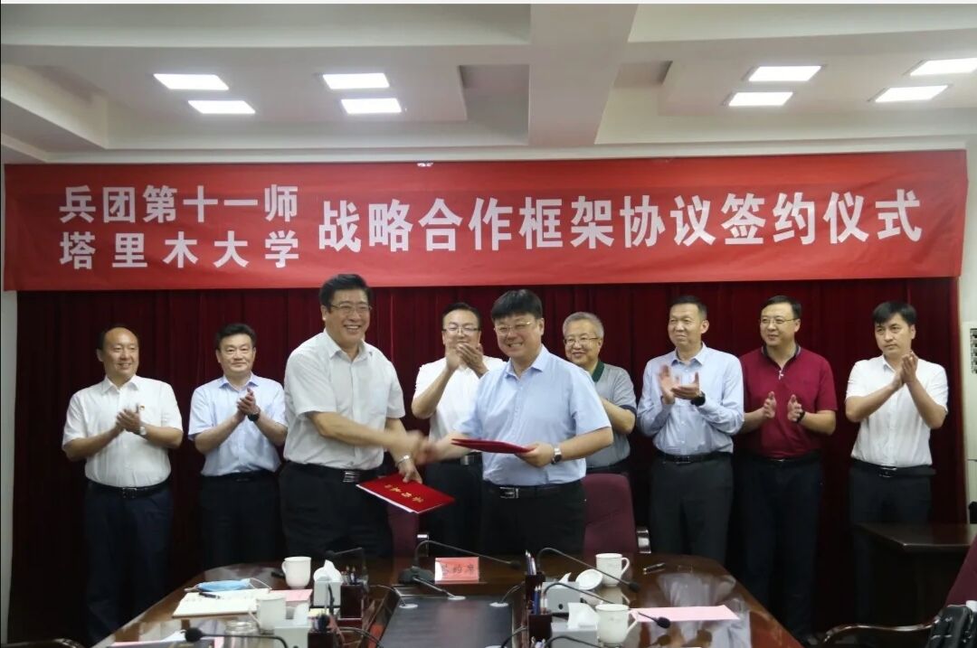 6月1日,塔里木大学党委副书记、校长张传辉率代表团一行赴十一师,就基础工程建设、人才培养等相关合作事宜进行洽谈交流,双方在达成了战略合作共识后,共同签订了战略合作框架协议。十一师党委书记、政委赵卫东,师党委副书记、师长杨正生,师党委常委、副师长张杰参加座谈并共同见证了签约。
