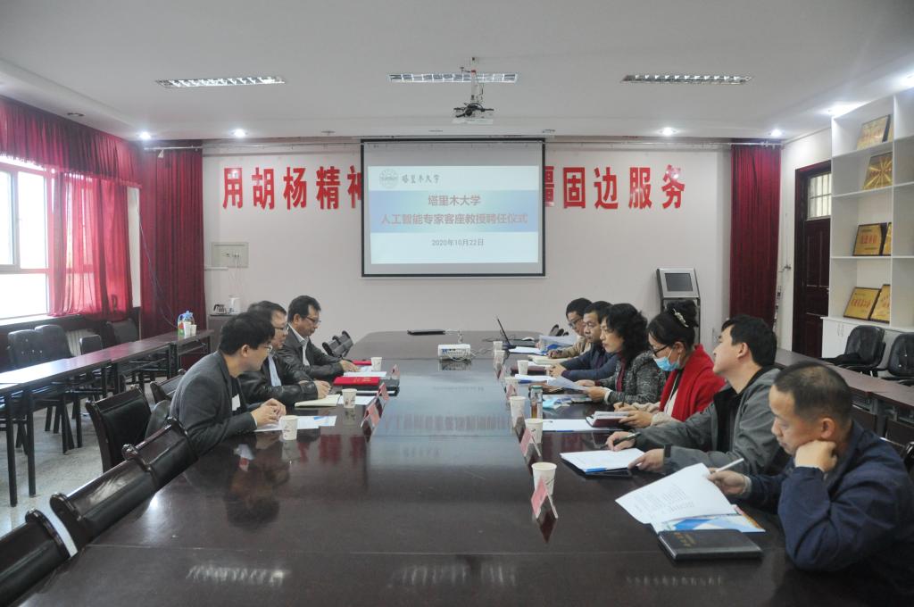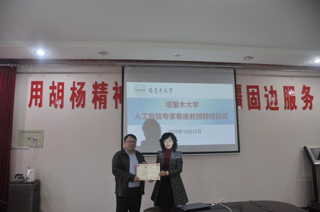 张爱萍对陆文强、何国田两位教授的到来表示欢迎,并为他们颁发了聘书。希望他们将自己掌握的前沿信息和科研成果与南疆区域发展需求相结合,与我校数字农业方面开展高水平高层次的项目合作,实现资源共享、互惠双赢、共同发展。为推进南疆经济和社会发展贡献应有力量。