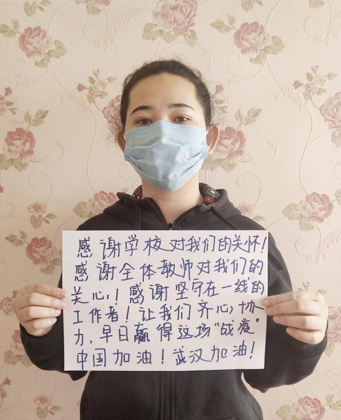 国贸2019级王振涛说:“在此次疫情中,学校对我们高度关注,了解每一位同学的身体健康,如此无微不至的关心,我们要感谢学校的各位领导。”