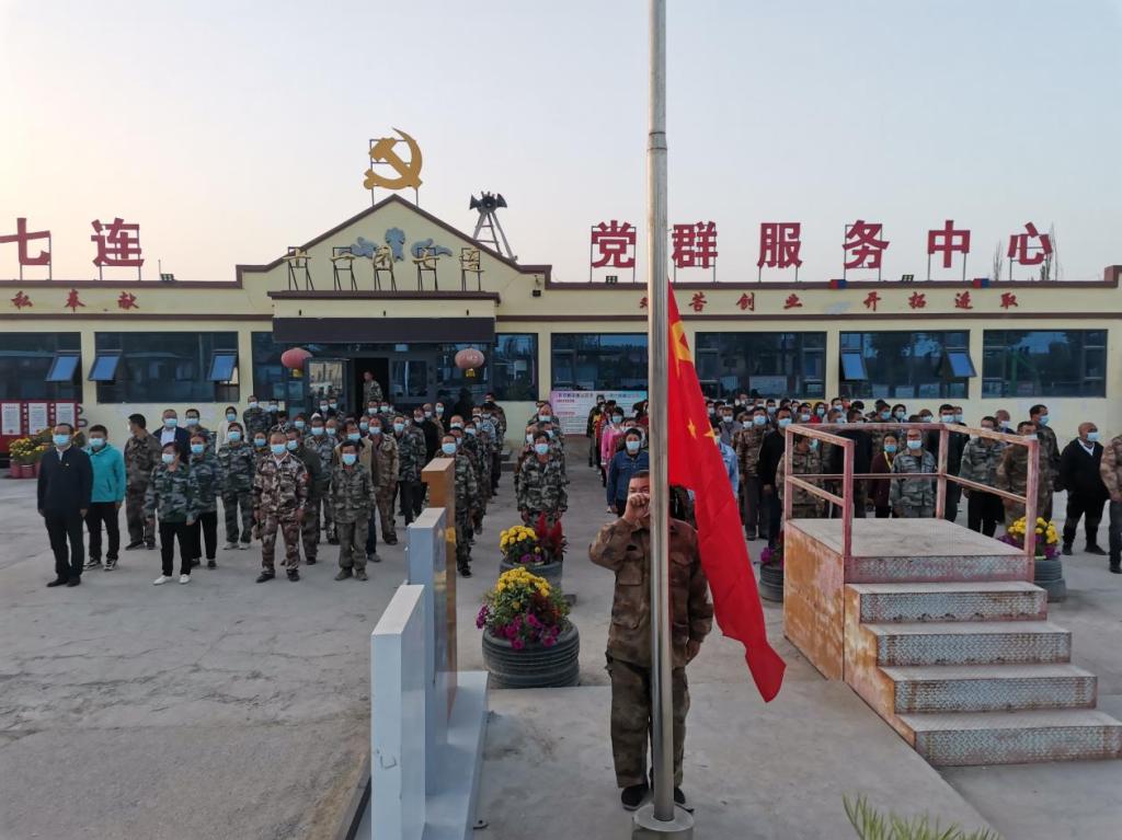 10月1日早上,全连党员干部和职工群众齐聚连队,用隆重的升国旗仪式向祖国致以崇高敬意和美好祝福,共祝伟大祖国繁荣昌盛、国泰民安。