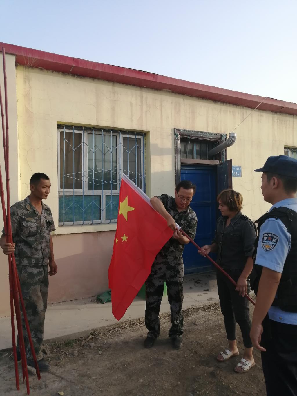 9月30日,工作队与连队“两委”为每家每户亲自送去五星红旗,并帮助行动不便、高龄职工悬挂。