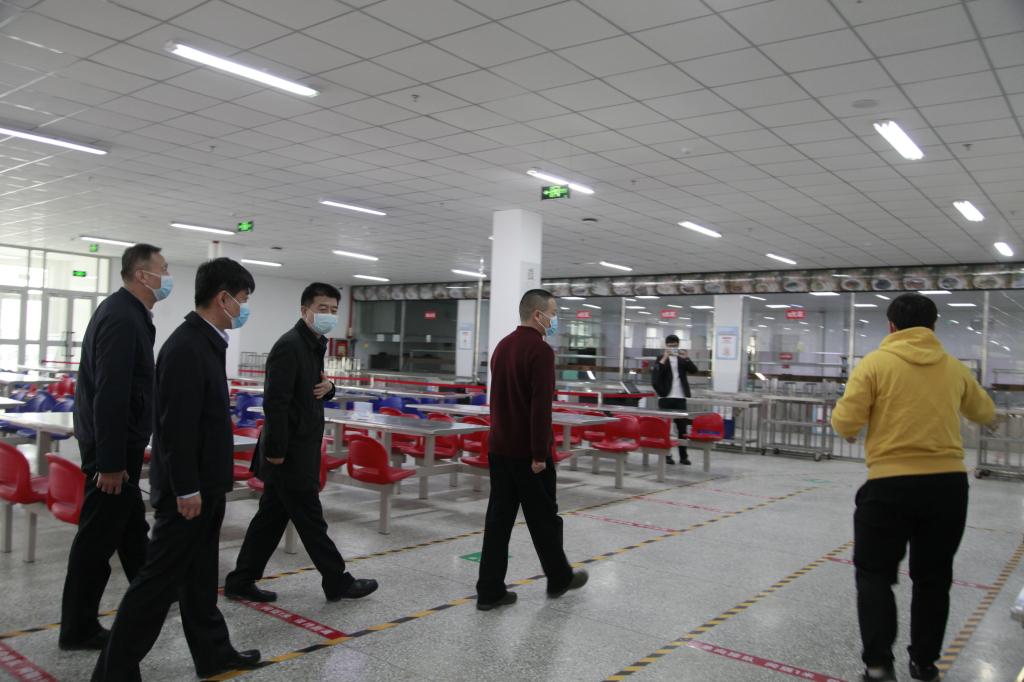 卢跃东一行在我校党委书记赵光辉,党委常委、副校长于军等领导陪同下,先后来到学校北门、西区12号学生公寓、学生第四食堂、校医院等处,实地了解学生返校、防疫检测、防控措施、宿舍管理、用餐服务、物资准备、课程学习等工作情况。
