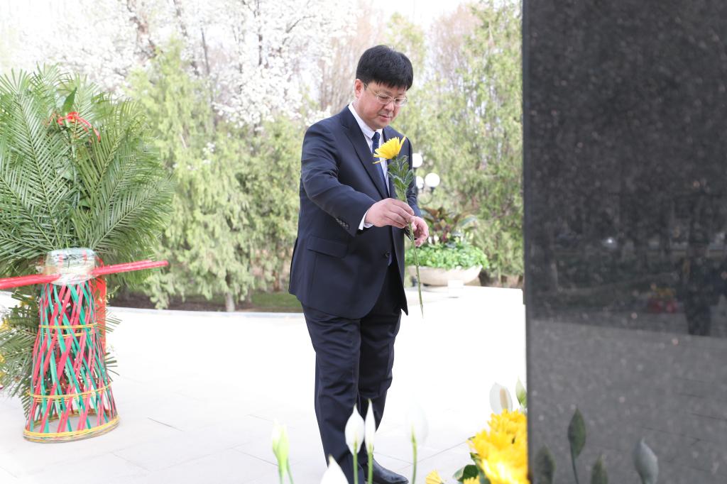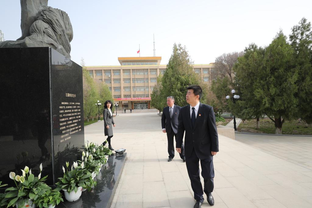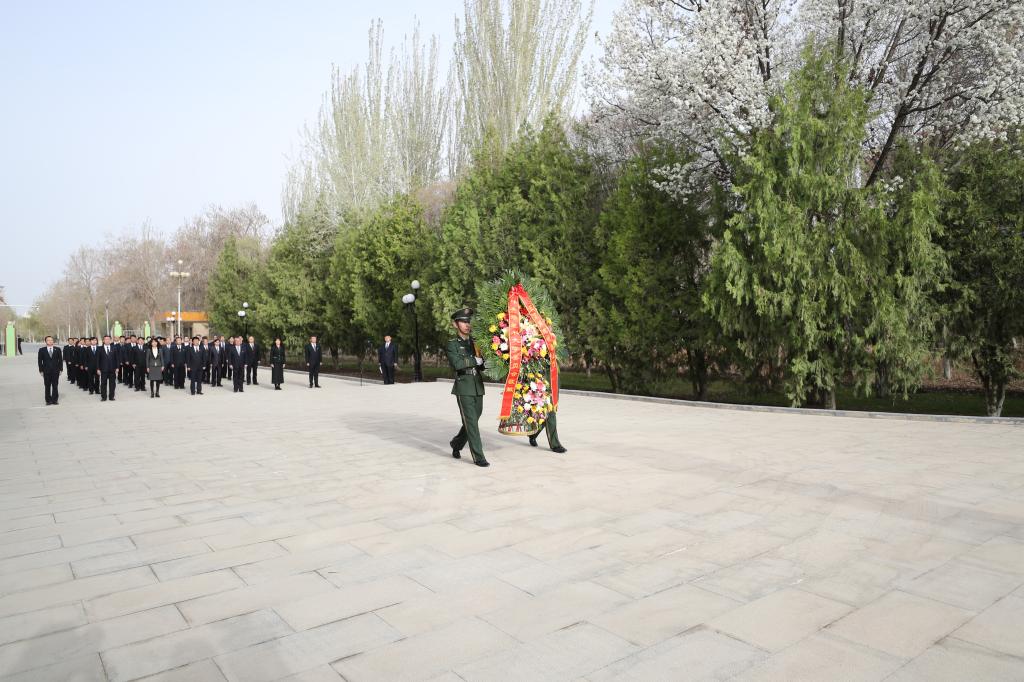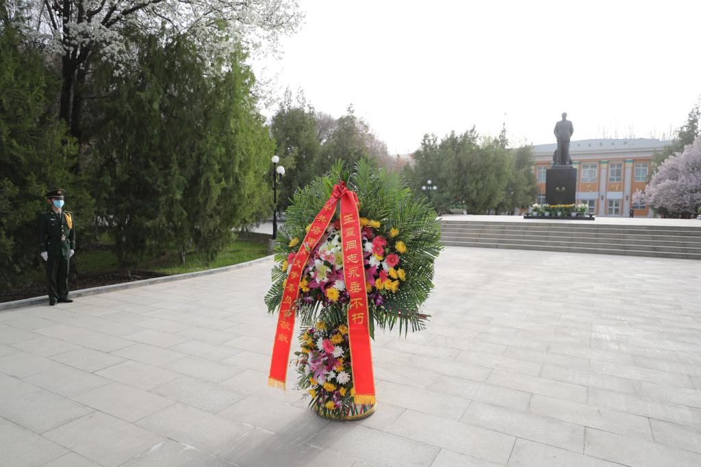 4月4日上午,塔里木大学党委副书记、校长张传辉在主持缅怀先烈向王震将军铜像敬献花篮仪式时说。