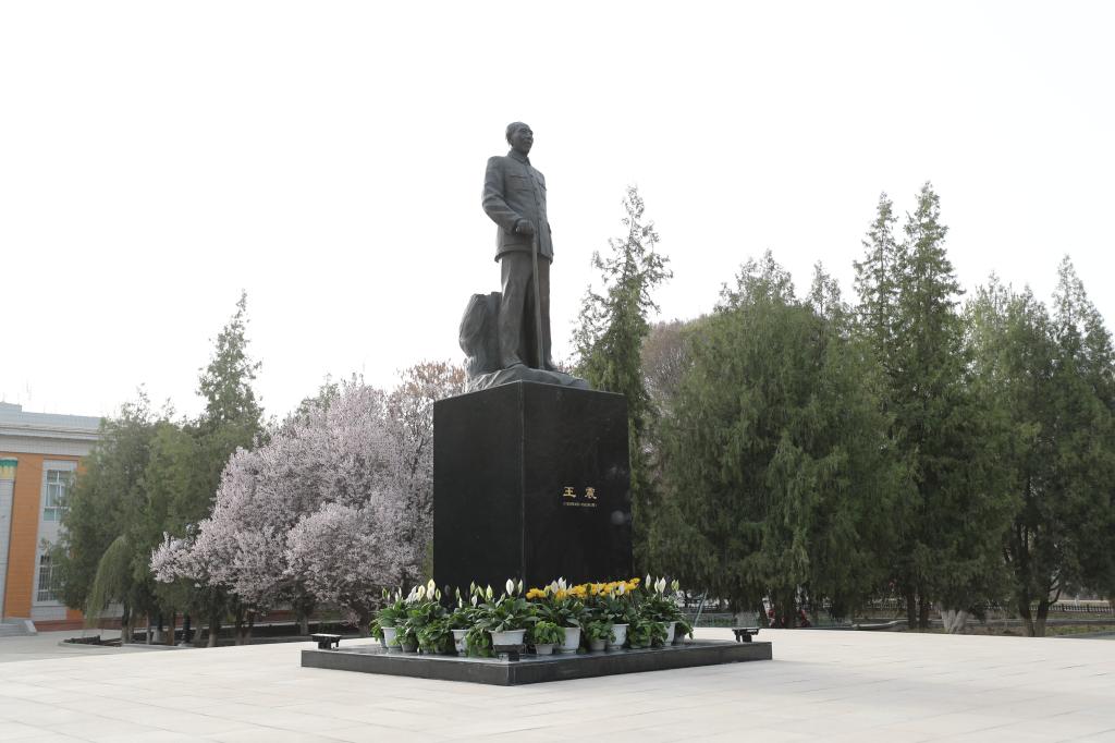 全体在校校领导,各部门、各学院主要负责同志,整齐列队,向王震将军铜像,敬献花篮、鞠躬致敬。