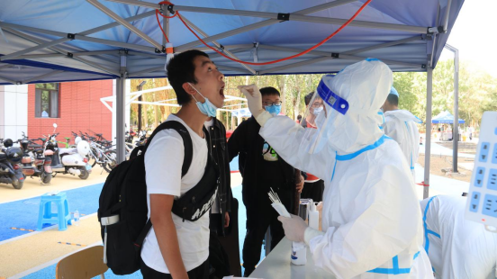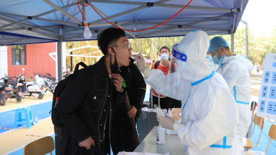 第二站:新生驾到,安全第一。全员核检查验“两码一酸”,筑牢健康安全屏障。