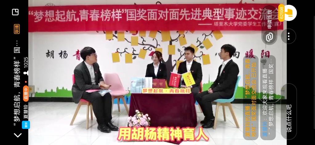 为进一步加强我校学生资助政策宣传,讲好中国学生资助故事,深入推进三全育人——资助育人,充分发挥我校学生的先锋模范作用,激发我校学生的学习热情,凝聚榜样力量。3月26日晚,学工部通过钉钉直播举办“梦想起航 青春榜样”国奖面对面先进典型事迹交流会。10名国家奖学金获奖学生代表做客直播间,信息工程学院辅导员秦鹏主持交流会,活动吸引了1192名学生围观,点赞量10万余次。