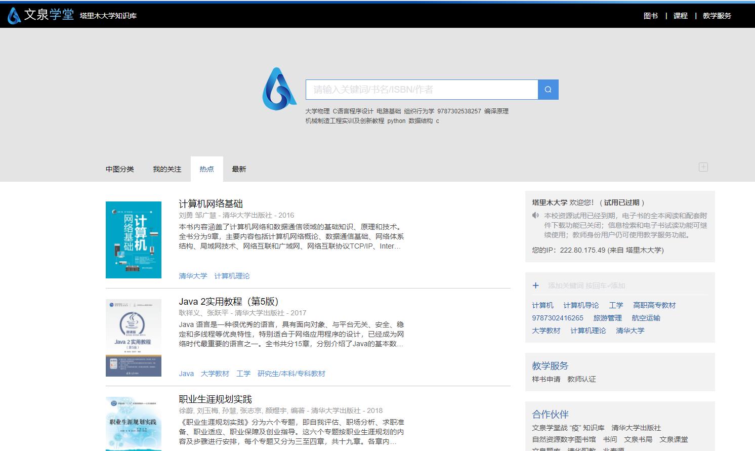 为了方便师生在家备课、查询资料、图书馆转变服务方式,做到闭馆不闭网,强化线上服务,为师生提供文献信息服务。图书馆信息咨询部主动与各数据库商联系,确保疫情期间数据库正常使用服务,并为不在校师生开通维普、万方、知网研学平台等学术资源。通过“塔里木大学教师”QQ群、“塔里木大学科研文献”微信服务群等,持续引导师生们在线使用图书馆数字资源和文献,保障师生对文献信息的需求。采访编目部积极联系高等教育出版社、清华大学出版社、机械工业出版社等教材出版机构,为教师开通“文泉学堂”、“高教书苑”等电子教材使用权限,有效解决教师备课教材和参考书籍不足的困难。