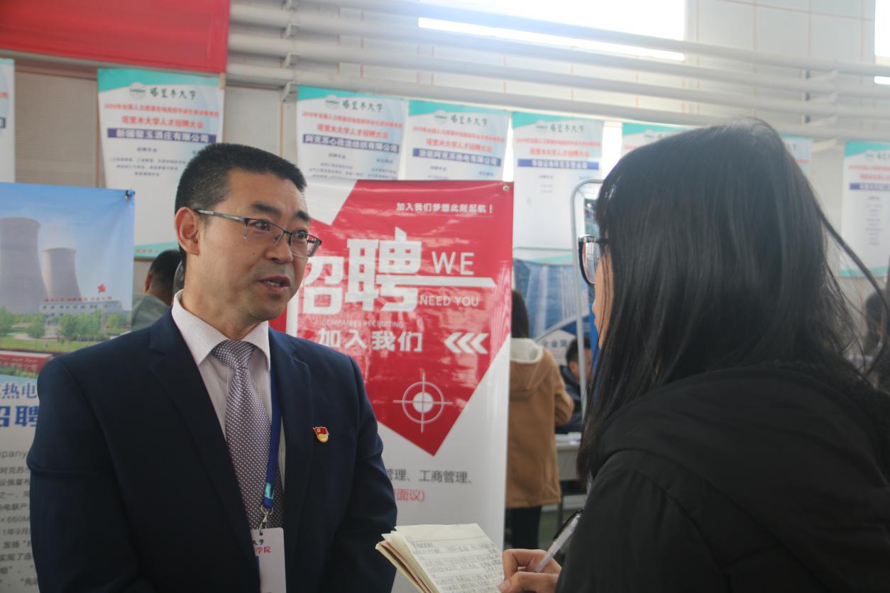朱天生:第一,学院开展了就业指导课,并对一些礼仪、就业常识进行了培训,以缓解毕业生临场紧张心理,做有备之战;第二,学院开展了全院教职工为毕业生推荐工作动员大会和班主任组织好学生就业的会议。促进学生就业是全院每一位老师的责任,我们要上下一心,齐心协力促进学生就业。第三,请优秀校友返回母校给毕业生宣讲自己就业创业的故事,给应届毕业生借鉴参考,使毕业生的选择更加理性,切合实际。第四,学校组织了四个就业推介工作组,赴南疆五地州开展就业推介宣传工作。第五,针对一些公司,我们设立了招聘专场,使双向选择更加有针对性。这次招聘会规模较以往更大,就业面更加宽泛。
