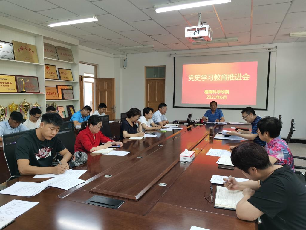 6月10日下午,植物科学学院召开党史学习教育推进会。学院党史学习教育领导小组成员、党支部书记及科级层干部参加会议。会议由学院党委副书记朱天生主持,在农科楼203会议室进行。