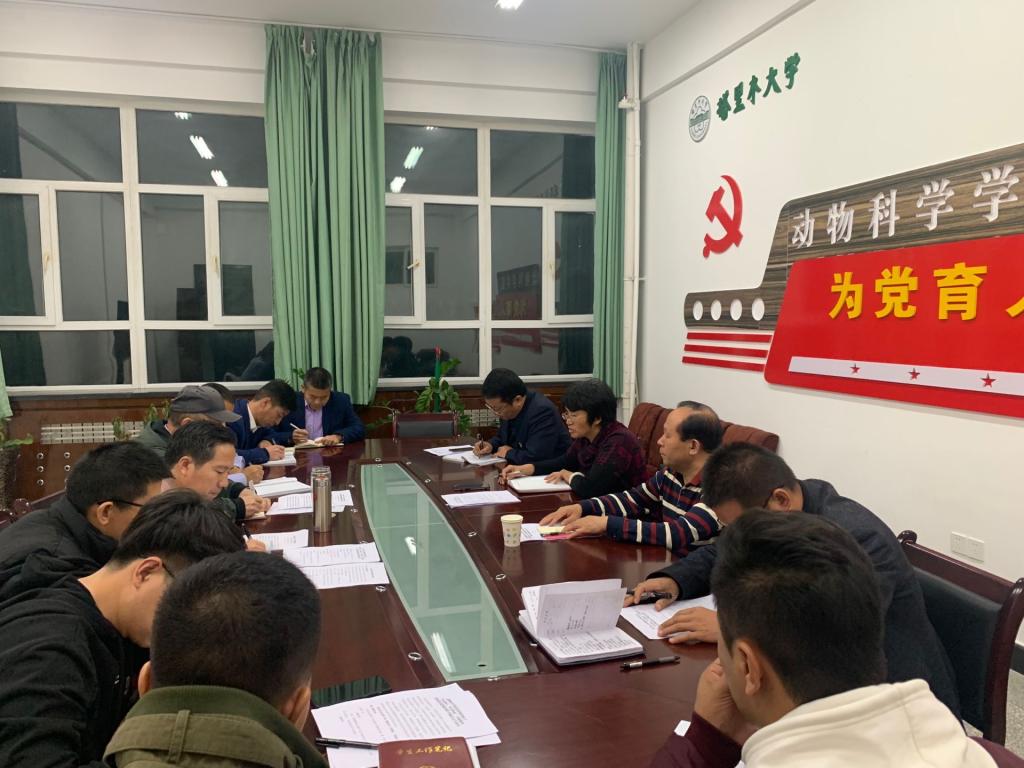 根据“不忘初心、牢记使命”主题教育安排,11月13日晚,动科院召开对照党章党规找差距专题会议。党委常委、副校长卢光志,学校第一指导组副组长杨宝仁,学院党委领导班子成员、全体科级干部、党支部书记等参加。会议由动科院党委副书记、院长陈伟主持,在动科楼313会议室召开。