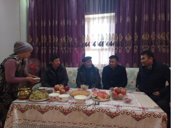 支部党员前往柯坪县玉尔其乡托马艾日克村慰问党员和群众,与他们深入交流,了解他们的生活、生产、收入及身体状况,并与他们一起学习六中全会精神。