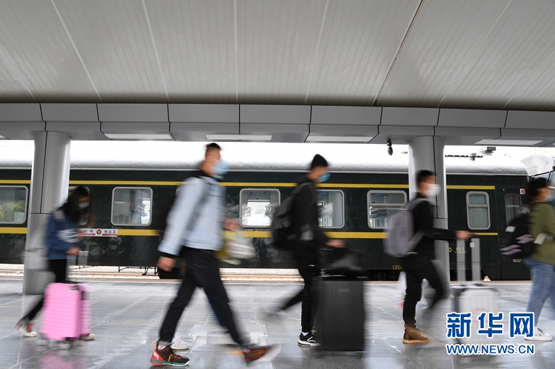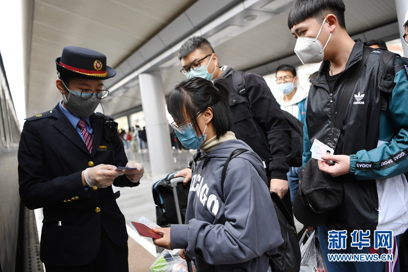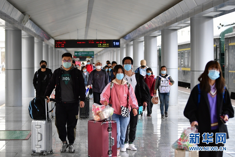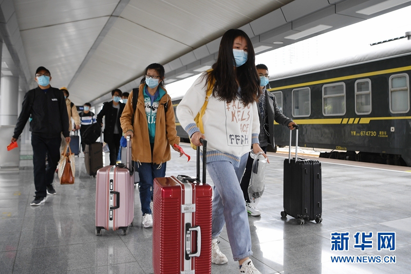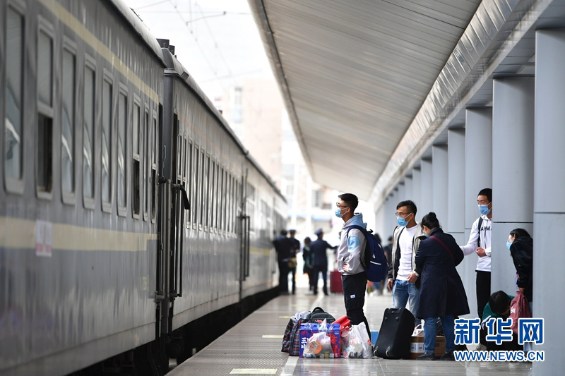 4月17日,塔里木大学的学生准备从兰州火车站登上学生专列出发。新华社记者 陈斌 摄