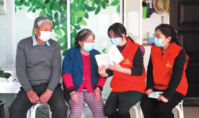 12月2日,六师一〇一团南泉社区党支部开展“学党史悟初心、送学上门暖人心”志愿服务活动。社区党员志愿者到辖区老党员家,宣传党的十九届六中全会精神,赠送学习资料。魏新江 摄
