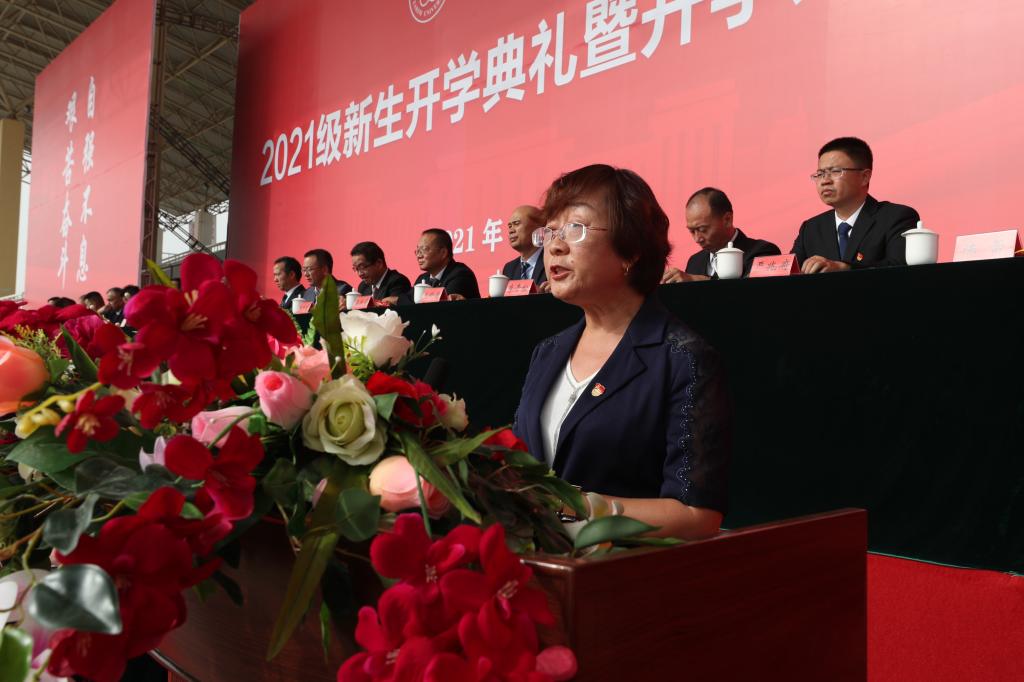 党委书记赵光辉,党委副书记、校长张传辉,党委副书记、纪委书记单洪山,副校长张利莉,党委常委、副校长曲义勇、赵峰华、于军、石长青及各学院、有关部门领导出席。辅导员、班主任、全体2021级新生参加。典礼由石长青主持,在西区运动场举行。