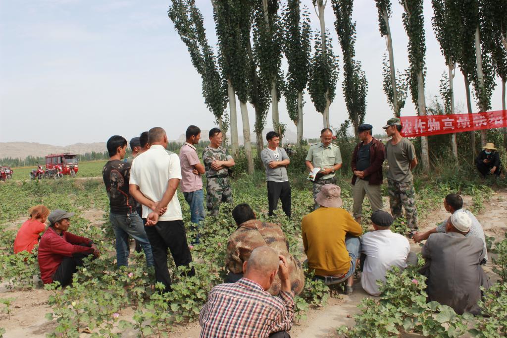 团队专家深入连队,在梁清华的亲自带领下,对连队当前棉花长势和管理情况进行深入调研并开展棉花高产栽培技术现场培训,培训人数达70余人次,服务队向农户赠送价值为两千余元的农药和叶面肥。