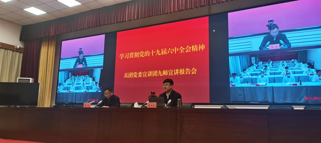 为深入学习贯彻党的十九届六中全会精神,切实把全体党员干部的思想与行动统一到六中全会精神上来,12月3日,兵团党委学习贯彻党的十九届六中全会精神宣讲团成员、塔里木大学党委副书记、校长张传辉,赴兵团第九师开展党的十九届六中全会精神宣讲。