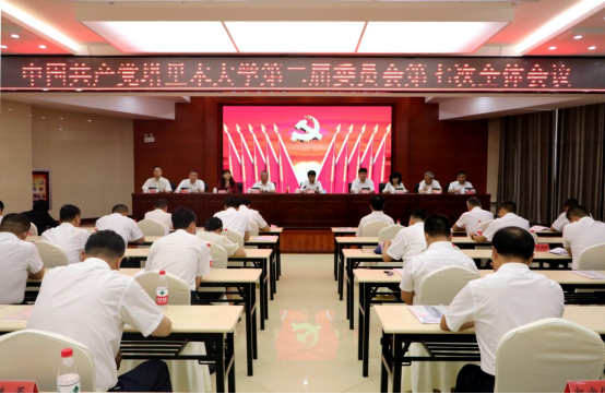 7月16日上午,伴随着雄壮的奏唱国歌声,中国共产党塔里木大学第二届委员会第七次全体会议在南疆双语培训中心二楼报告厅拉开帷幕。全会以习近平新时代中国特色社会主义思想为指导,传达学习习近平总书记“七一”重要讲话精神,全面贯彻落实党的十九大和十九届二中、三中、四中、五中全会、第三次中央新疆工作座谈会和习近平总书记重要指示批示精神,总结上半年工作,统筹规划和安排部署下半年重点任务,动员全校各级党组织和广大师生员工牢记初心使命,坚定理想信念,完整准确贯彻新时代党的治疆方略,牢牢扭住社会稳定和长治久安总目标,进一步统一思想、凝心聚力、鼓足干劲、乘势而上,统筹推进学校扩大办学规模和高质量发展。