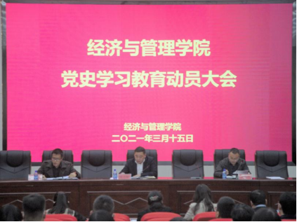 3月15日下午,经管院在文科实验楼503会议室召开党史学习教育动员大会。学院党委副书记、院长蒋志辉,党委副书记谷建杰以及党委委员、各系党支部书记、全院师生党员参加动员会。会议由谷建杰主持。