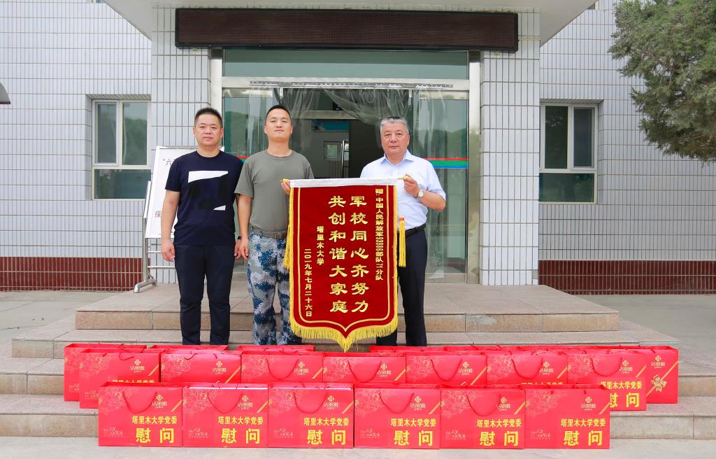 在第92个中国人民解放军建军节来临之际,塔里木大学党委副书记、纪委书记单洪山一行,先后来到新疆军区某步兵部队和空军部队,看望慰问部队官兵,向广大官兵致以节日的祝福,并与部队首长进行座谈交流。学校有关部门领导陪同。