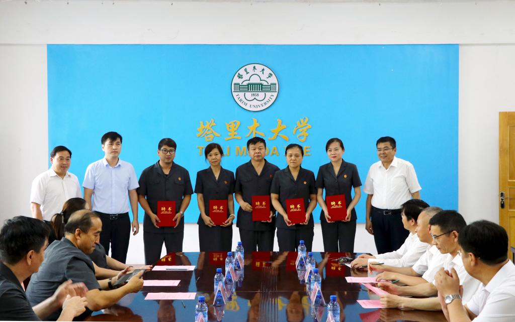 仪式上张传辉为呼应军颁发了客座教授聘书。教师工作部部长郑文轩、经管院党委书记龚平、副院长蒋志辉为一师法院系统徐冬梅等6位法官颁发了兼职教师聘书。