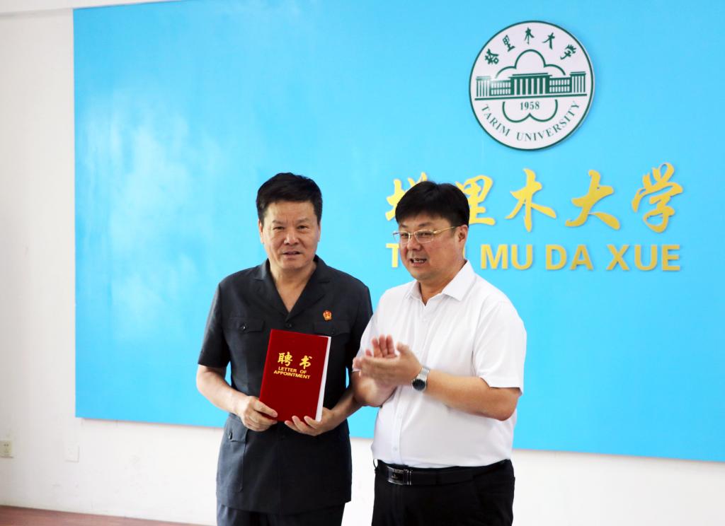 党委副书记、校长张传辉出席聘任仪式并讲话,对第一师法院系统专家的到来表示欢迎和感谢。他指出,我校法学专业为新疆特别是南疆地区培养了一批批优秀的法律专业人才,得益于第一师法院系统的大力支持和密切合作。学校的发展离不开一师法院创造的良好司法环境,这一次法学专家的聘任和达成的一系列合作协议,有利于我校法学人才培养质量的进一步提升,特别是在优化实践教学成效,实现资源共享,更好地服务兵团和南疆发展,培养输送更多优秀人才有着重要的现实意义。