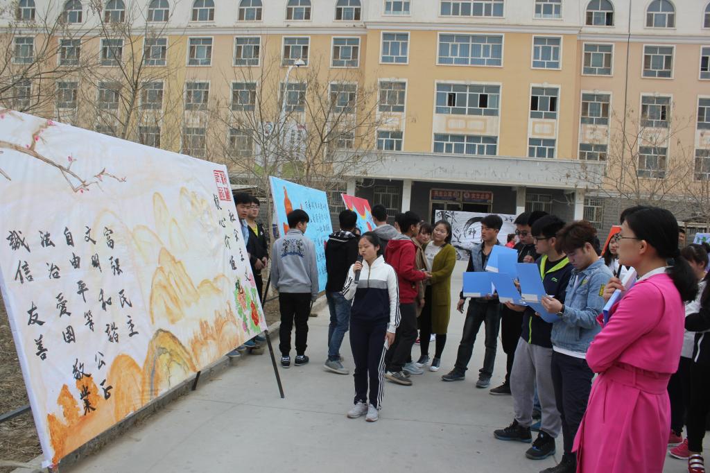 二是坚持以爱国主义教育为核心,在长征胜利80周年,新中国成立70周年之际,组织开展“我与祖国共奋进”、“胡杨经典朗诵”、演讲比赛、“诚信点亮中国”演讲比赛、清明祭、王震将军像献花等爱国主题活动,注重把握政治方向,注重服务中心工作,着力打造文化精品。充分发挥校园文化启迪人、感染人、塑造人的作用,培育知荣辱、讲正气、做奉献、促和谐的良好风尚。
