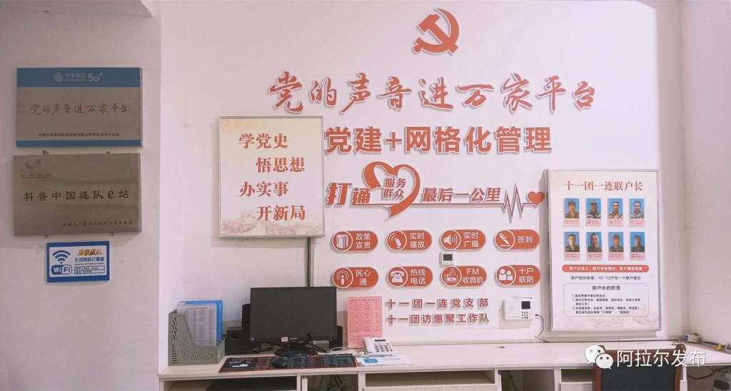 今年5月以来,十一团一连对连队广播进行升级,充分发挥小喇叭的传播优势,安装“党的声音进万家”智慧小喇叭平台,把党的知识传到家家户户,定期推送党的政策、法律知识、红歌以及农业生产技术等。还将平台管理与本地广播电台实现无缝对接,实现党建+网格化管理,打通服务群众“最后一公里”。